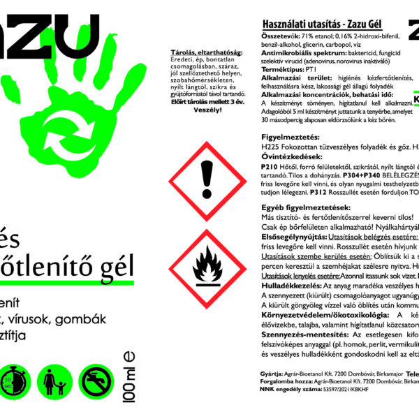 Zazu 100ml kézfertőtlenítő gél – 10 darabos csomag